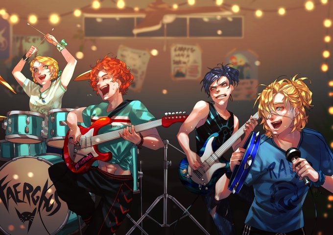 Here's the cover art I drew for @fe3hmodernzine , which opened preorders today! Faerghus Four, but as a fun little garage band🎤 ✨Preoders can be done here: anotherstepforwardzine.bigcartel.com