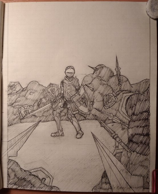 Ye, gotta put some work into realistic people, but that's a whole another story... Zzz ((3 Day 12/31 - Stuck #inktober #inktoberday12 #inktober2021 #Inktober2021day12 #DarkSouls #fanart