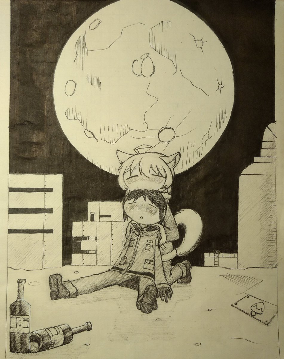 @tkmiz Girls' last hangover Day 18/31 - Moon #inktober #inktoberday18 #inktober2021 #inktober2021day18 #girlslasttour #shoujoshuumatsu #yuri #chito