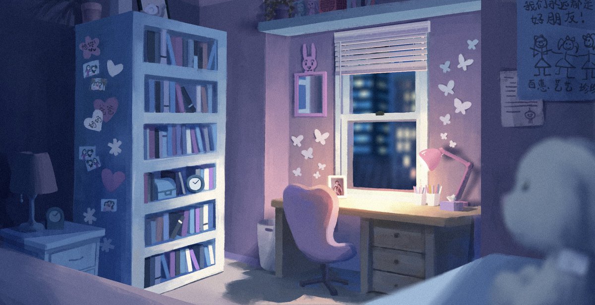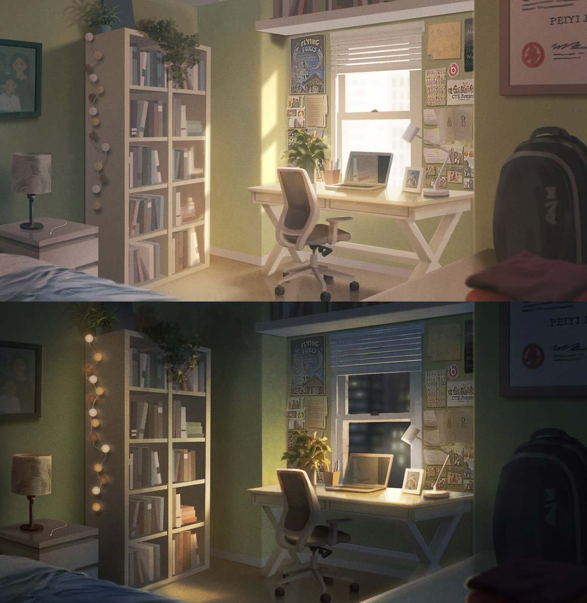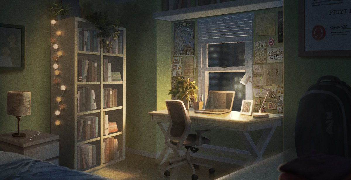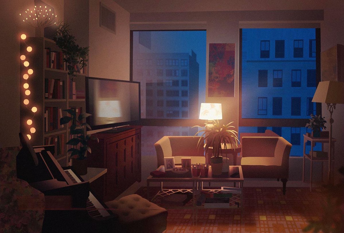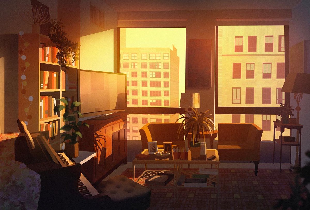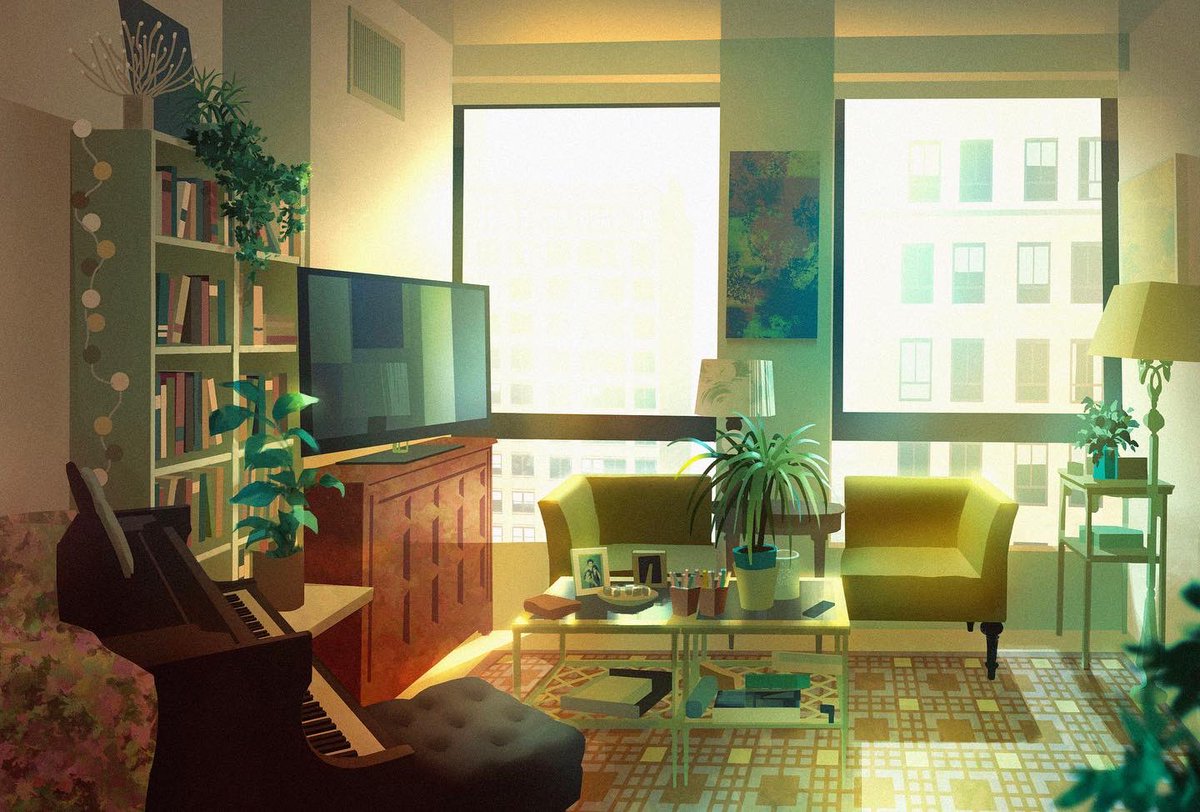 My room at 4 times of day! These pieces were an assignment for @chuwenjie’s Color and Light class last spring. Hands down the best class I’ve ever taken—I HIGHLY recommend to anyone who wants to improve their digital painting skills! #artistsontwitter #digitalart