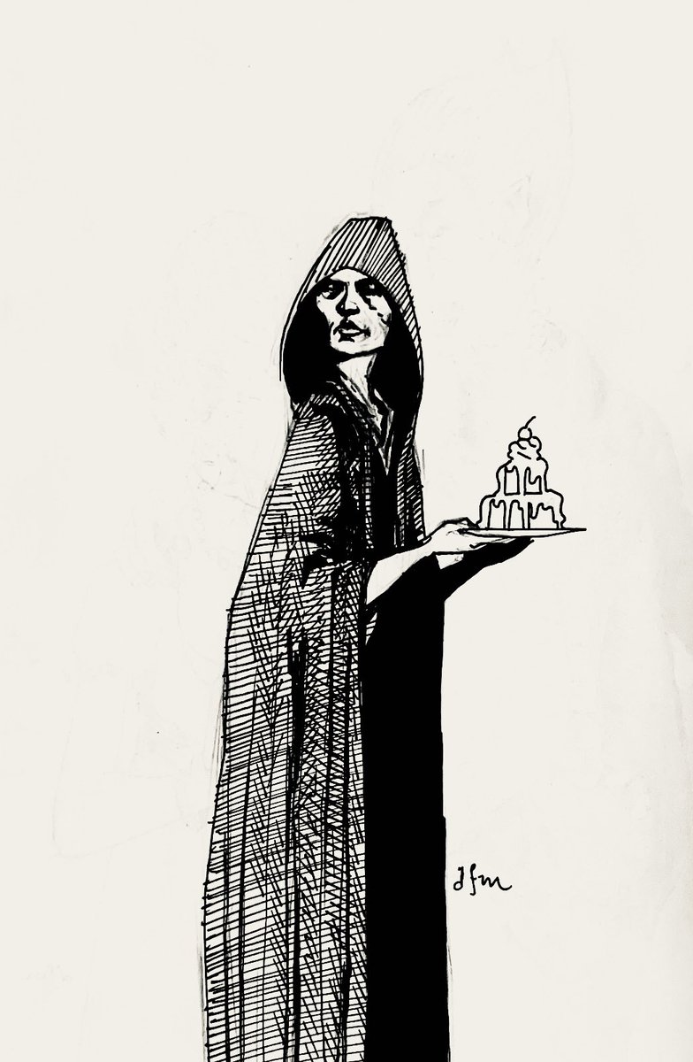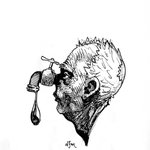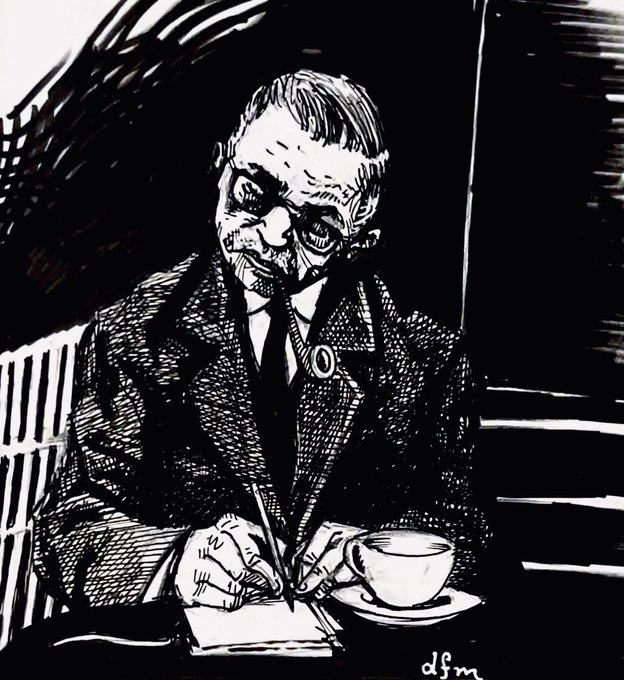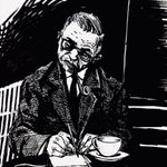 Day 27: #Snack #inktober #inktober2022 An older gent snacking on nuts from his suit coat pocket
