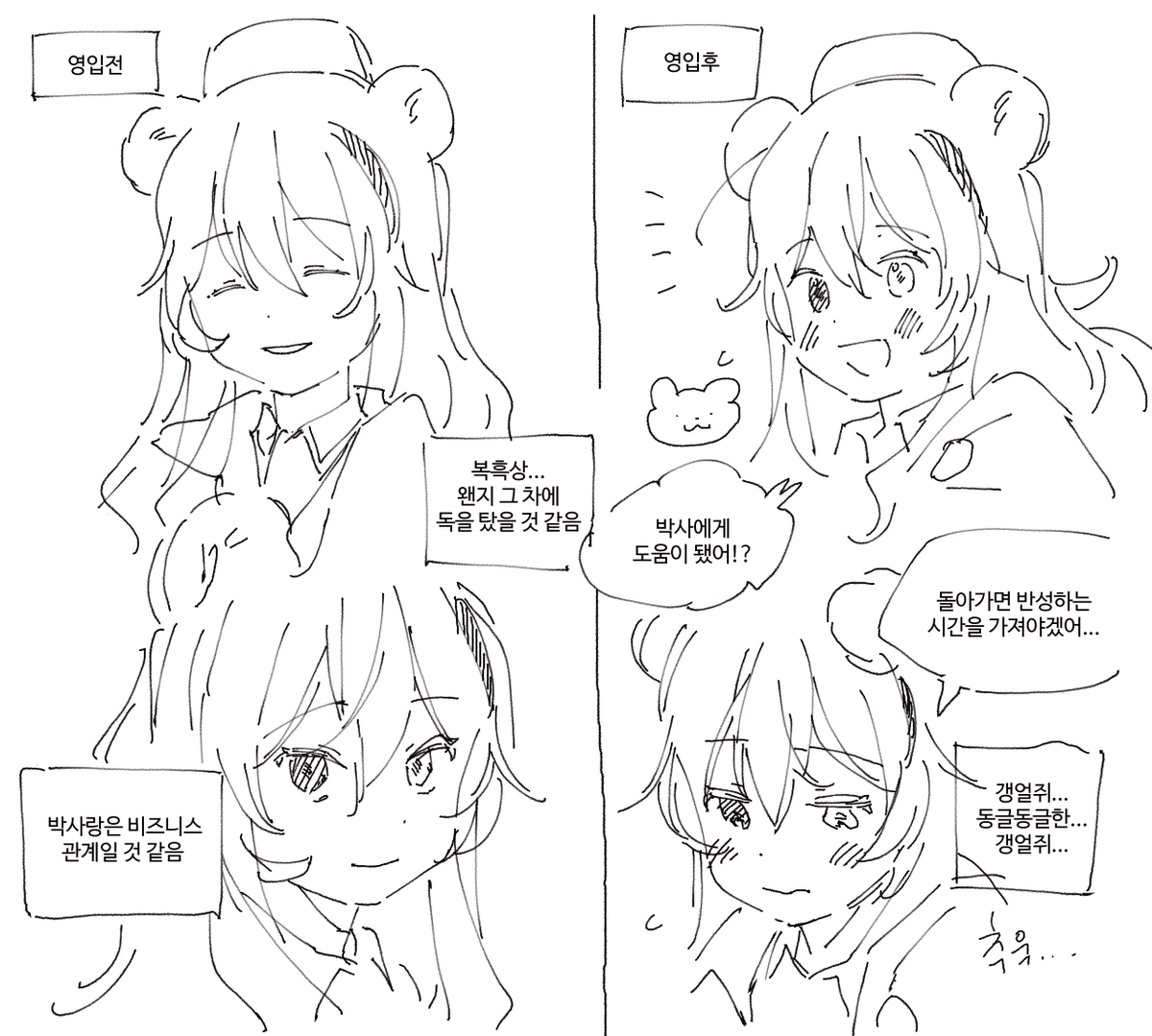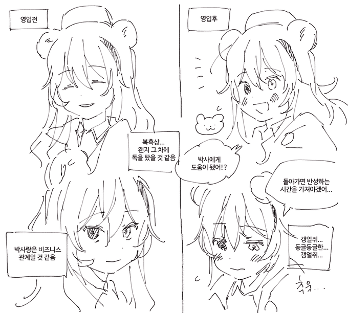 이거.. 모여서 열심히 곰돌이 모자 만들다가 아유무거 만들때 아니죠아유무상은토끼죠 이랫을거생각하면웃기네