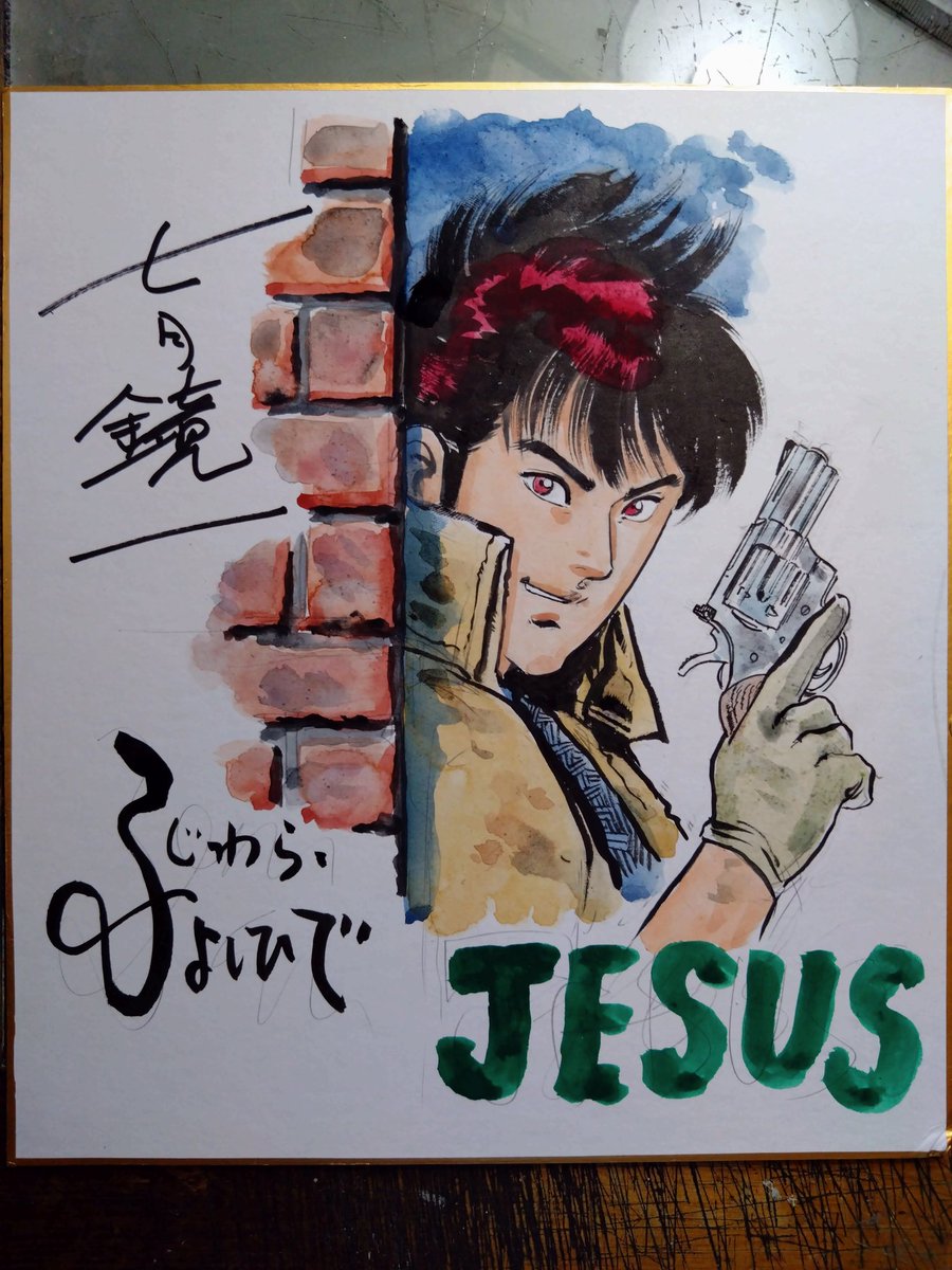 141 543 いただいてしまいましたー。皆川さんとたかしげさんのサイン色紙です。ジーザスを描いてくださいましたー。サイバーコネクトツー松山さんとひっさんと吉松さんに感謝ー。 23/07/02 23:08