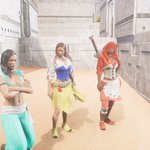 みんなでコスプレ★ 左から 偉そうなジャスミン(アラジン) 可憐な白雪姫(白雪姫) 狼に余裕で勝てそうな赤ずきんちゃん (赤ずきん) 他のキャラも作る予定(๑•̀ㅂ•́)و✧ #コナンアウトキャスト #コスプレ