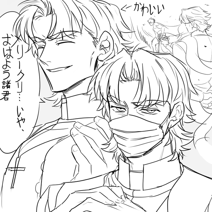 短く落書き~!!夏言峰..髪のせいで若く見えるといいな~!