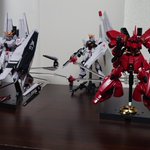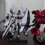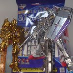#シルバーな模型を見せて 風の魔装機神(シャインシルバー仕上げ) 金(ガンダムベース景品)と銀(メッキシルバー仕上げ)のファースト REビギナ・ギナ(エクストラフィニッシュ) ─手持ちだとこの辺りですね😅