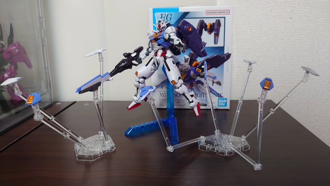 #ガンプラ #ガンプラ好きと繋がりたい #水星の魔女 HGミラソウル社製フライトユニット&ウェポンディスプレイベース作成完了‼️ フライトユニットはしっかりした作りですね、ビルドハンドで代用してた平手が付くのも有難い。 ディスプレイベースは2セット使用、やっとガンビットを全展開出来ました。
