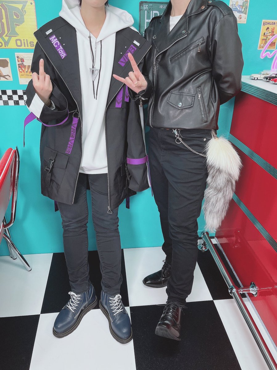 念願のbntr🐟コスしてきた〜🐱🐰 パーカーも革ジャンも着れて嬉しみ🥰🥰