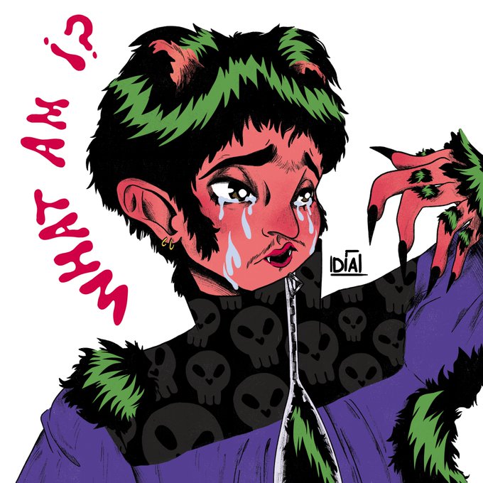 I'm late but here is my young werewolf, he's scared of becoming something he might be afraid of.🐺✨ #Inktober #ArtistOnTwitter #digitalart #characterdesign