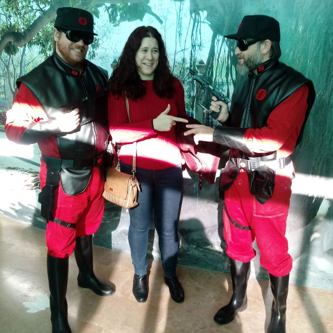 No se me ve pagada con los actores de #cosplay de la mítica #serie#V, para nada. De pequeña #Dyana era mi #heroina a pesar de ser la #mala porque era una mujer #empoderada y fuerte, además de llamarse como yo. Además que como lagarto molaba mucho. @HispaCon2019 #cienciaficcion