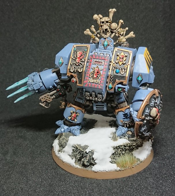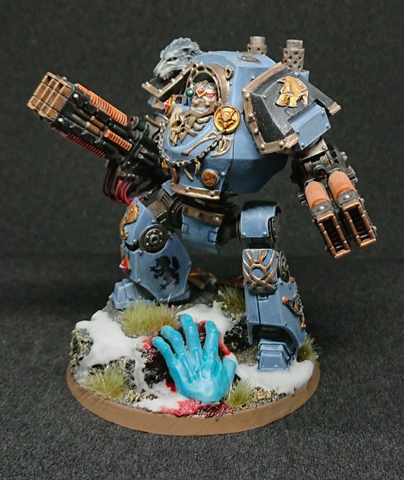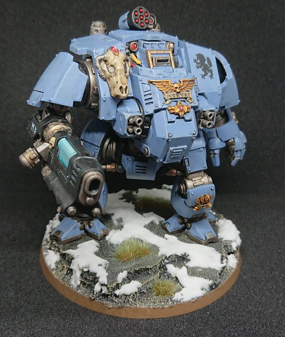 #今月作ったプラモ晒そうぜ 汎用棺桶型決戦兵器ウルフェンドレッドノート弐号機。 初号機はモデリングとペイント用のテストタイプ。これこそが前々からやってみたかった“棺桶の中でウルフェン化した”ドレッドノートです(初期プランではヴェネラブルの蓋を使うつもりだったけど細くてダメだった)。