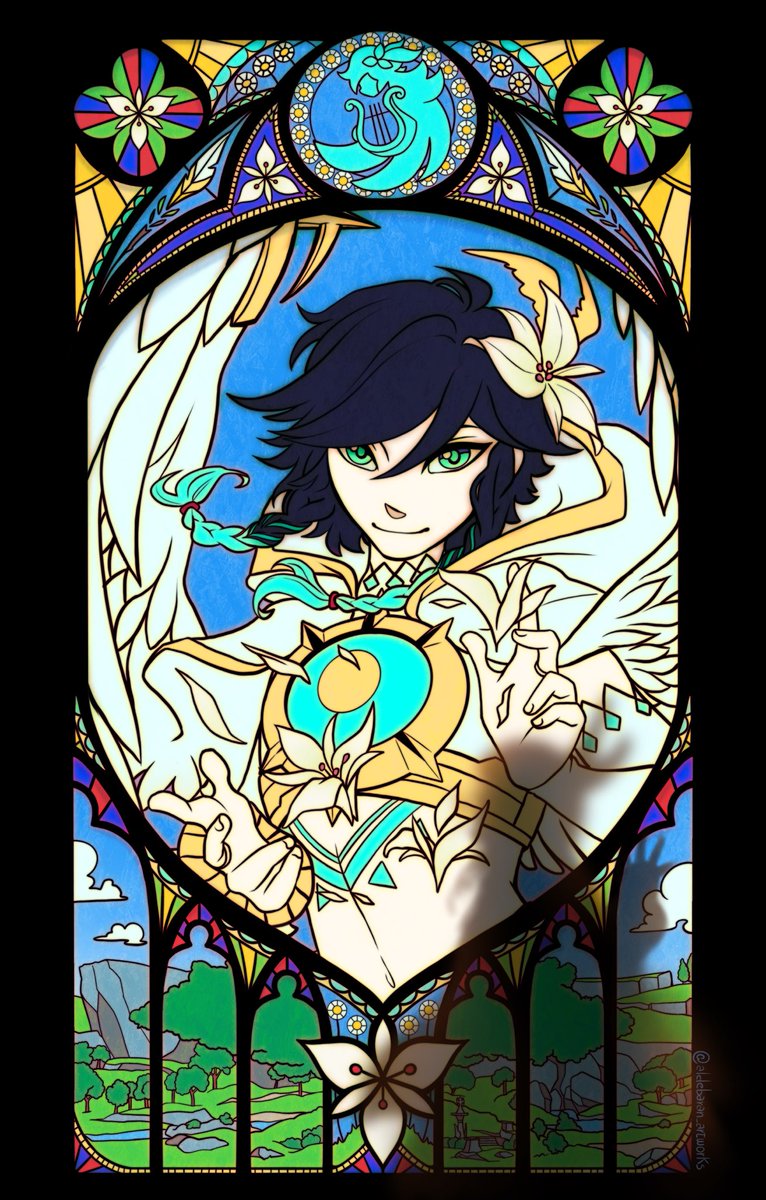 Felt like trying a background for the stained glass… got carried away in the process 🌼 I love colouring, but I wonder how this would have turned out with a traditional pencil line instead. #venti #genshinimpact #genshinfanart #genshinimpactfanart #ventifanart
