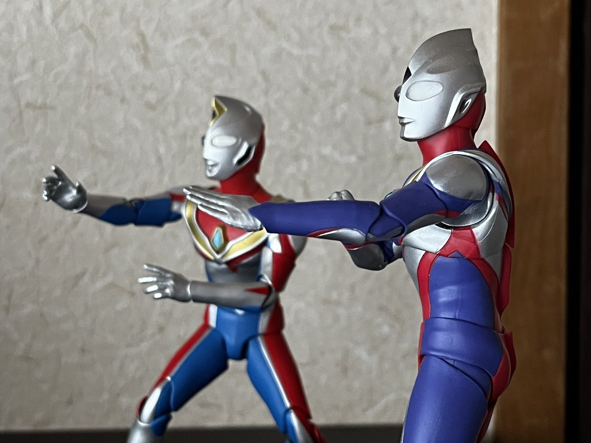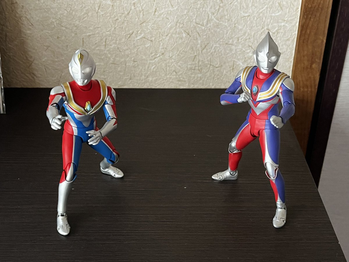 真骨彫ウルトラマンダイナ届きました! なかなかええ感じやけど、ティガと並べると権藤さんが2人になるから長谷川さんダイナと個人的には清水さんダイナ出してほしい(無理かな) #ウルトラマンダイナ #真骨彫 #t_shf