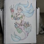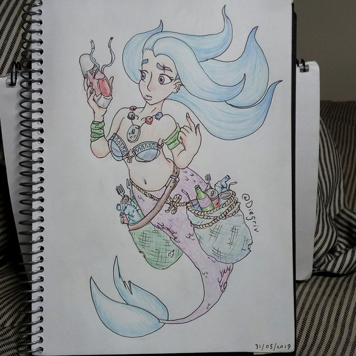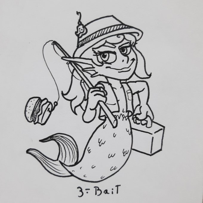Inktober dia 3: Cebo. Deberias desconfiar si ves una deliciosa hamburguesa flotando en el mar... ____ Inktober day 3: Bait. You should be careful if you see a tasty burger floating by the sea... #inktober #inktober2019 #traditional #character_design #mermaid #burger #diegriv