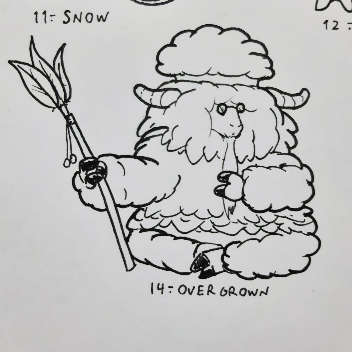 Inktober día 14: descuidado. La oveja chamán necesita una rebaja. ___ Inktober day 14: overgrown. The Shaman sheep needs a trim. #inktober #inktober2019 #overgrown #traditional #character_design #sheep #diegriv