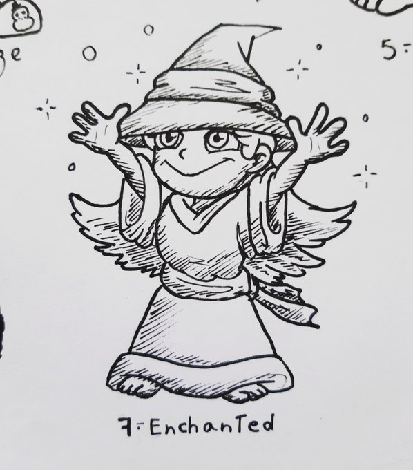 Inktober dia 7: Encantado. Primer intento de sombreado para hacer ver mejor el encamiento. ___ Inktober day 7: Enchanted. First try shading to make more noticable the enchantment. #inktober #inktober2019 #character_design #traditional #enchanted #witch #cute #diegriv