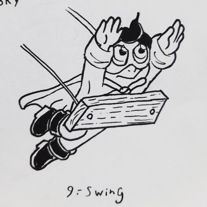 Inktober dia 9: Columpio. Me costó pensar en que dibujar para este. ¿Quien más hacia esto de chico? ___ Inktober day 9: Swing. Took me a lot figure out what to draw for this one. Who else did this as a kid? #inktober2019 #inktober #swing #traditional #character_design #diegriv