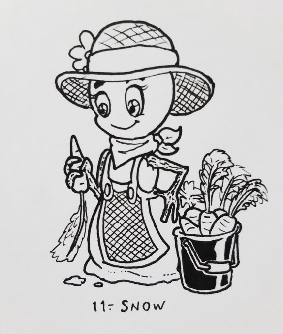 Inktober dia 11: nieve. Me gusta pensar que vende zanahorias pero que no gasta ninguna en una nariz ___ Inktober day 11: snow. I like to think she sell carrots but doesn't waste any as a nose #inktober #inktober2019 #character_design #traditional #snow #farmer #carrot #diegriv