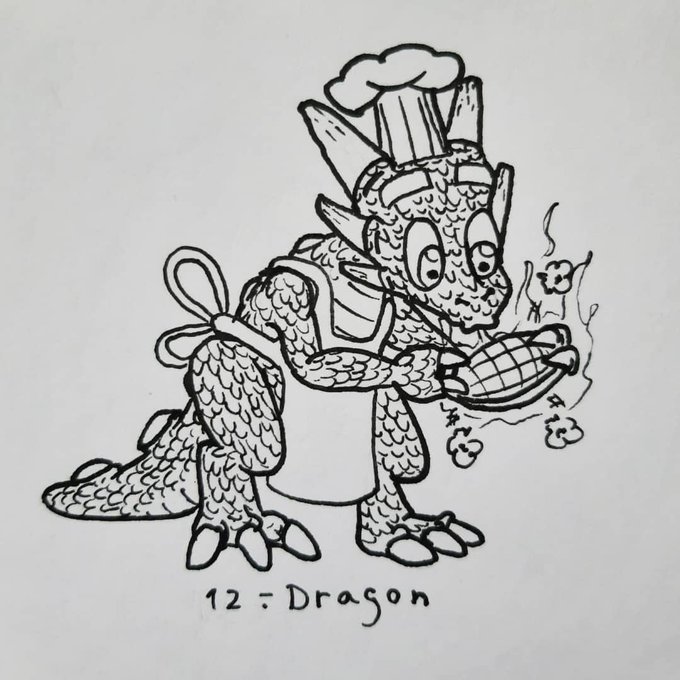 Inktober día 25: Sabroso. Maestro de cocina admira su obra. ____ Inktober day 25: Tasty. Cooking master admires his work. #inktober #inktober2019 #traditional #character_design #tasty #diegriv