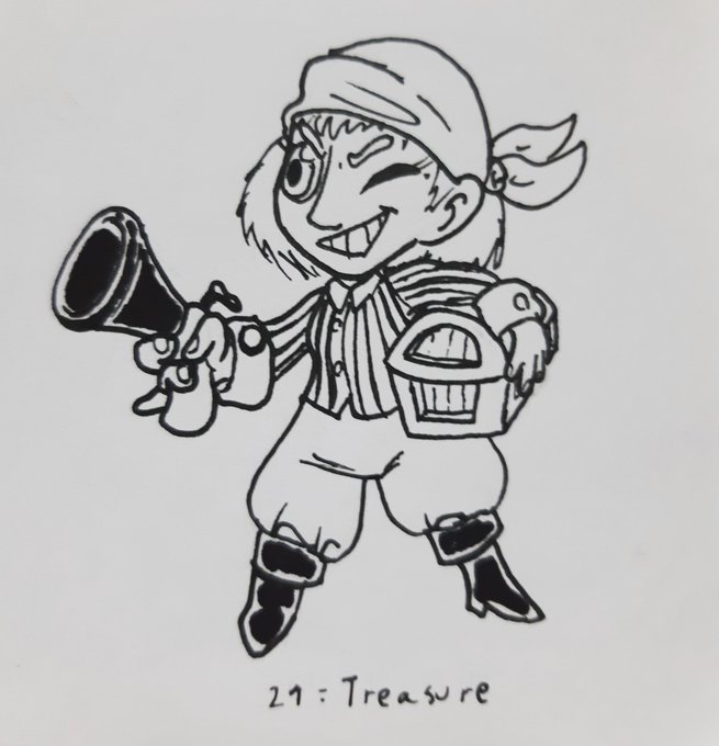 nktober día 21: Tesoro. Lista para el abordaje. ___ Inktober day 21: Treasure. Ready to board. #inktober #inktober2019 #traditional #character_design #treasure #diegriv