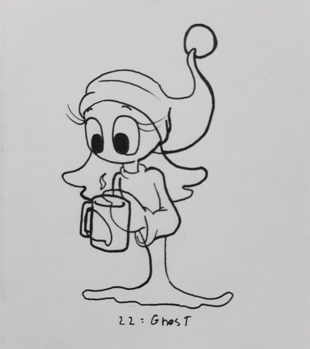 Inktober día 22: Fantasma. Le encanta la cocoa caliente. ___ Inktober day 22: Ghost. They love hot cocoa. #inktober #inktober2019 #character_design #traditional #ghost #spooky #diegriv