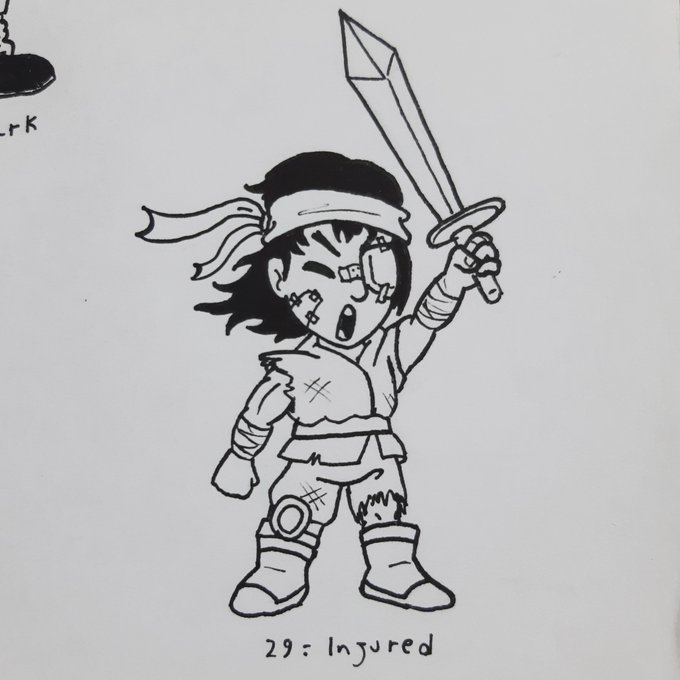 Inktober día 29: "Lesionado". Nunca rendirse. ___ Inktober day 29: "Injured". Never give up. #inktober #inktober2019 #traditional #character_design #injured #diegriv