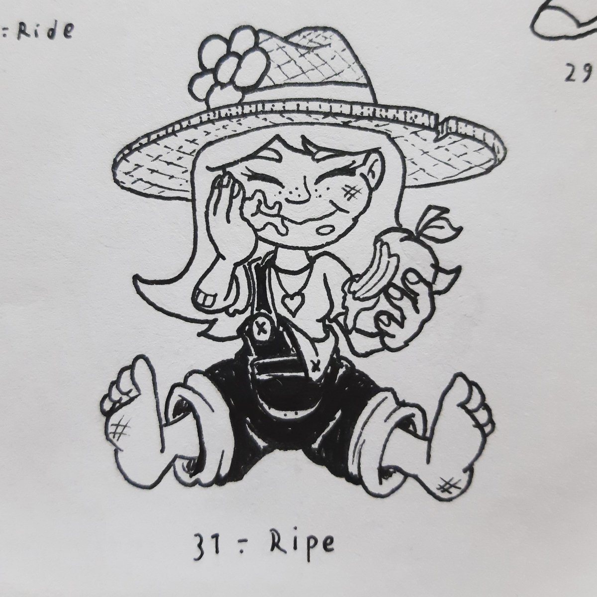 Inktober dia 31: "Maduro". Nada mejor que un dulce durazno en verano. ___ Inktober day 31: "Ripe". Nothing beats a sweet summer peach. #inktober #inktober2019 #character_design #traditional #ripe #sweet #cute #girl #diegriv