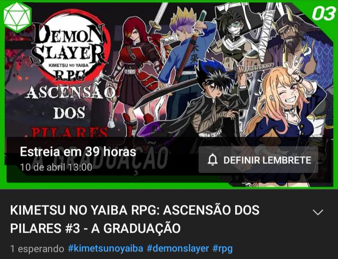 Finalmente! #kimetsunoyaiba #RPG tá marcado pra estrear esse domingo as 13h! Ativa as notificações pra não perder. #DemonSlayer #kimetsunoyaibafanart #dnd #anime ▶️ youtu.be/a3OZ7Xd5TsM ▶️ youtu.be/a3OZ7Xd5TsM ▶️ youtu.be/a3OZ7Xd5TsM