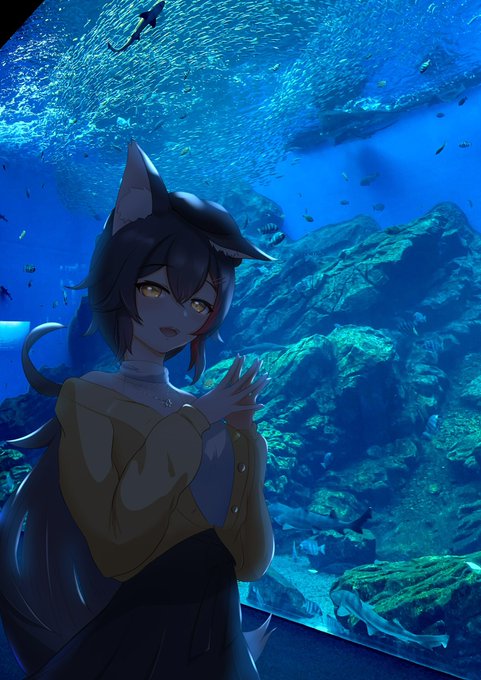 #飛び出せホロライブ #みおーん絵 水族館🐟🐠🐡🦈