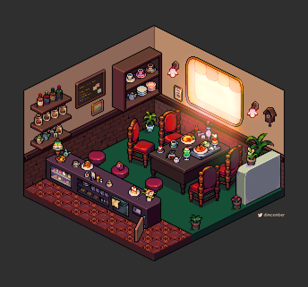 Did an isometric study; here's a cozy little kissaten cafe #pixelart