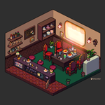 152 1332 Did an isometric study; here's a cozy little kissaten cafe #pixelart 23/03/13 22:10