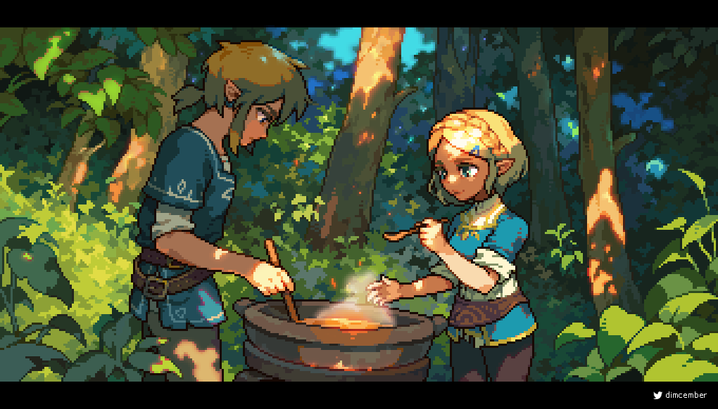 Before the events of totk I imagine link and Zelda would spend mundane days together cooking and stuff... #pixelart