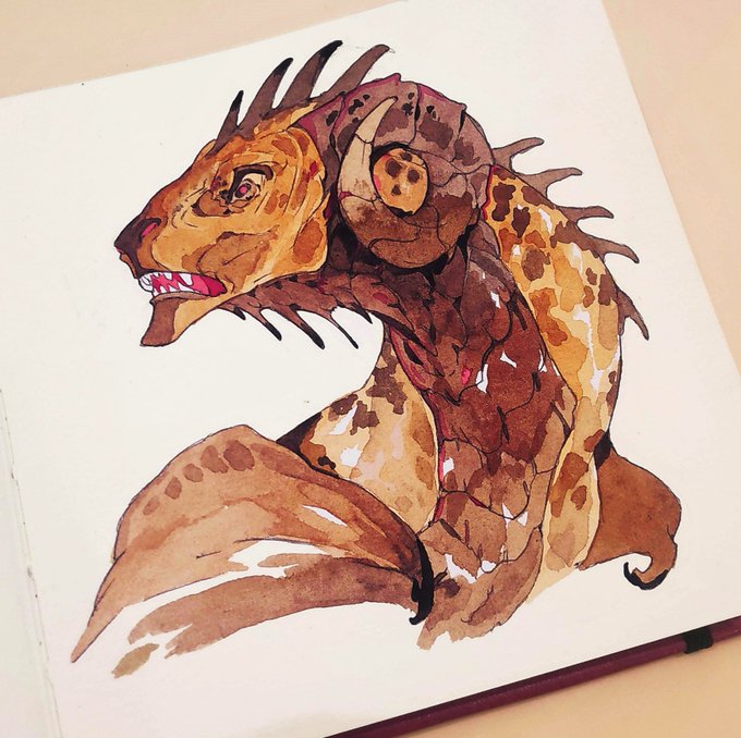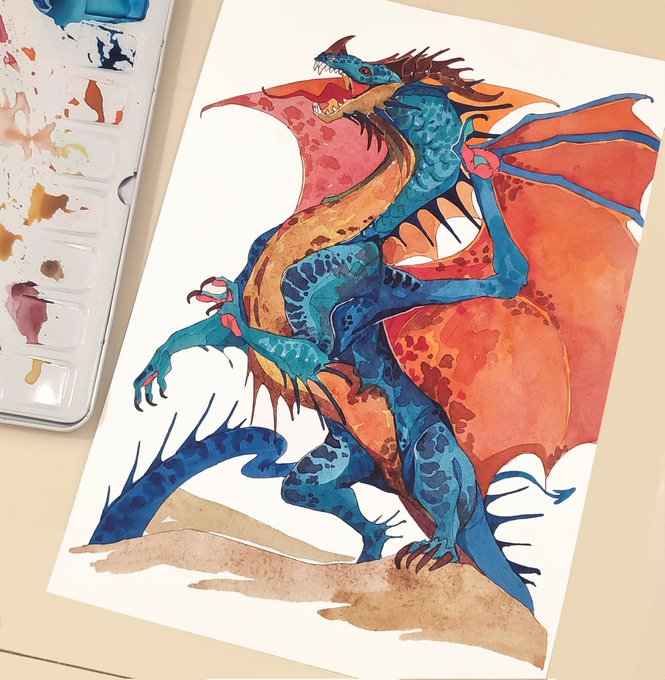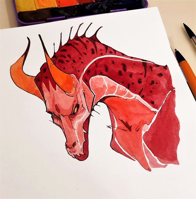 #art #dragon #traditionalart #watercolor Red is one of my favorite colors. I often try to paint dragons in warm reds. Lava dragon. XD