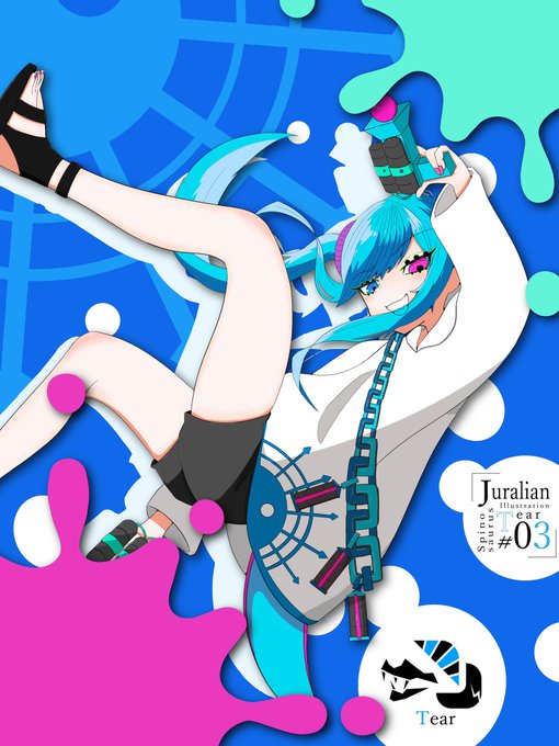 恐竜擬人化シリーズ 〜ジュラリアン〜 ティア(モデル:スピノサウルス) ・叛逆のギルドマスター ・めちゃくちゃポジティブで子供っぽい 背景、ロゴデザイン:@lamf_mofu #ジュラリアン #恐竜 #イラスト #illustration #イラスト好きと繋がりたい #絵描きさんフォロバ100