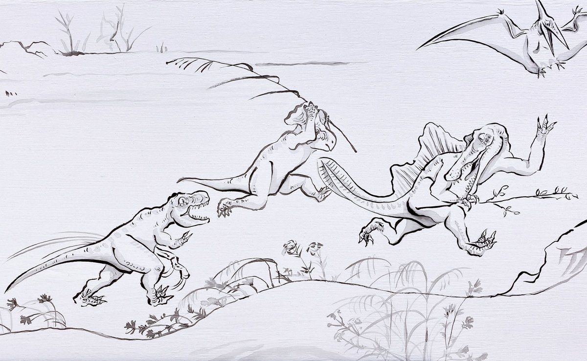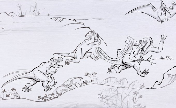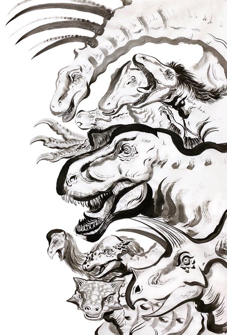 フォロワーさんが10人も増えたので かんたんに自己紹介を🤭 筆ペンで恐竜水墨画とか描いてる [きゃん]です! もともと恐竜学者目指して大学 行きましたが、紆余曲折あって 今は自営業でカフェやりながら 絵を描いてます〜🖌✨ 恐竜画家歴は5年👩🎨 #三億アカウントの中から私を発掘してください
