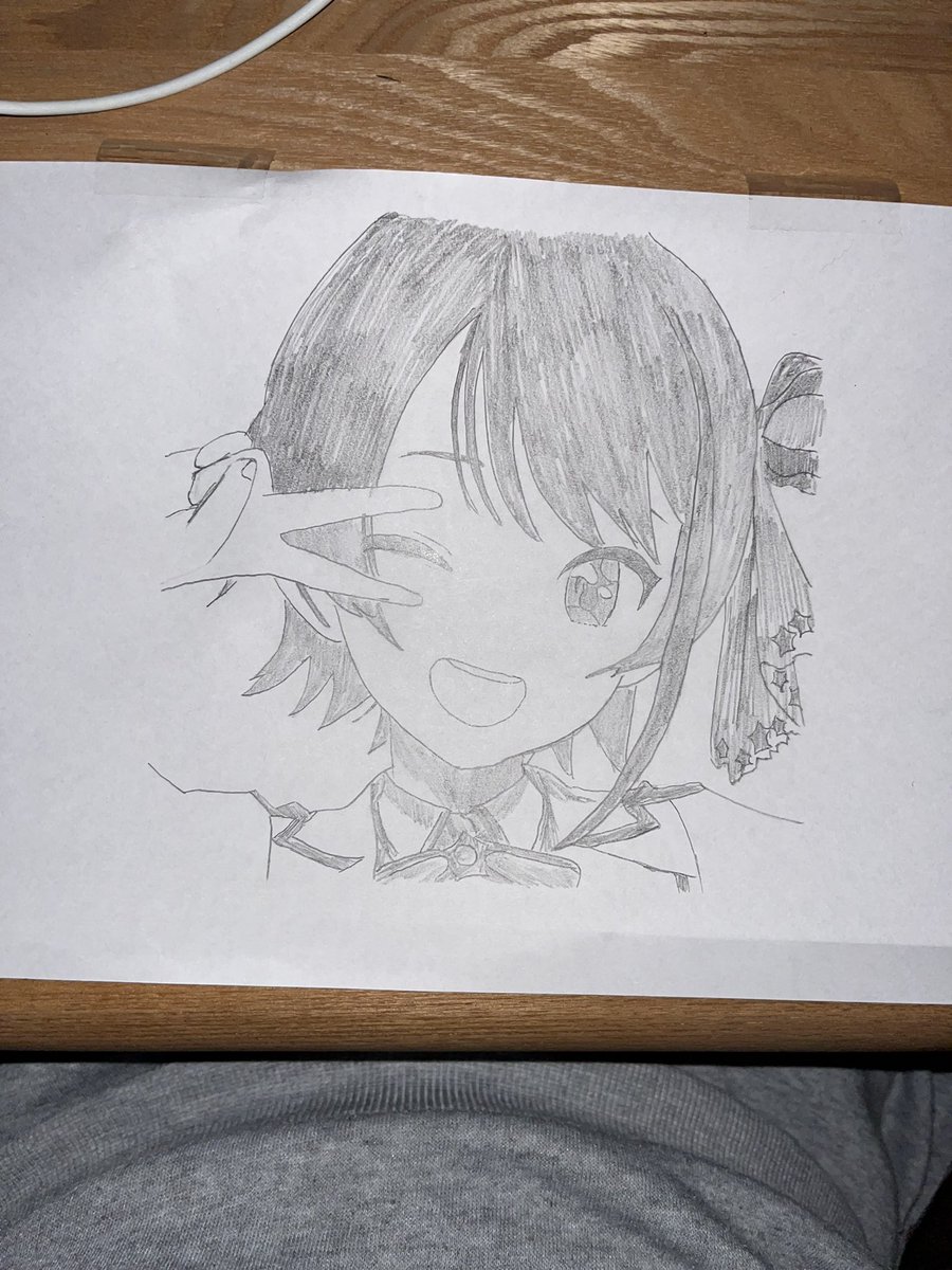 そらちゃんです。目のハイライトはあえて描きませんでした。なぜならそらちゃんは圧の人やから 書いてて思った鬼怖ぇ #soraArt #ときのそら @tokino_sora