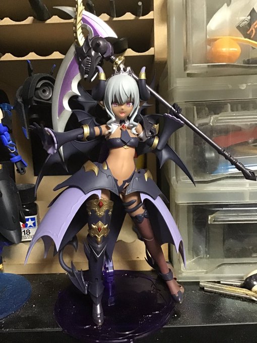 「刮目せよ!」 ということで相河愛花【総帥】完成。 愛花が闇堕ちして秘密結社の総帥になったイメージで作りました。と言うか角邪魔! 髪が干渉して首の角度おかしいので後日調整しよ。ラプラス・ダークネス?いえ、そんな山田知りませんねー #メガミデバイス