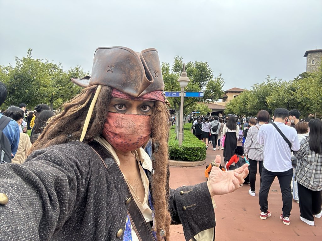 6 200 ディズニーシーに来ました🚢 今日はジャックスパロウです☠️ 45分早まって、8:15にオープンします😁 #Dハロ仮装 22/10/10 08:14