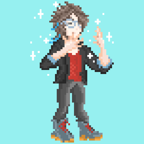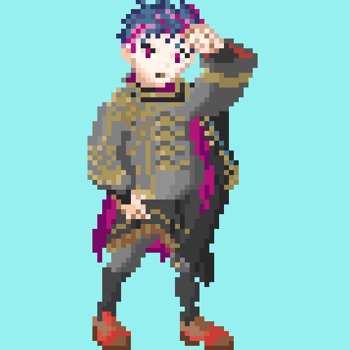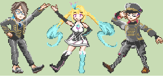 16 81 #ピルエット #ありすみゅーじあむ #MZMart #ドット絵 ごきげんようです!!のポーズをうろ覚えな兄ちゃんズ。 22/05/07 20:16
