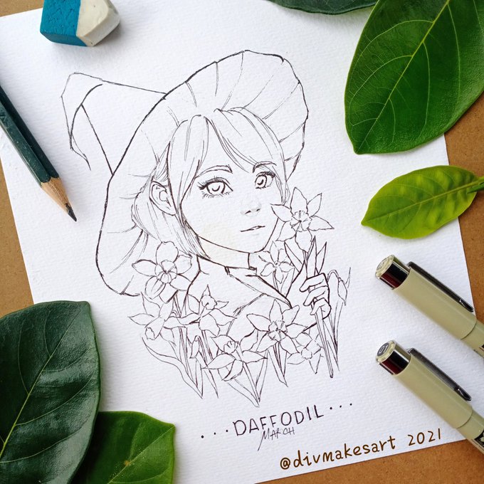 Daffodil, the birth flower of March. Not what I expected but still good enough. 😁 Practicing to keep progressing. 😆 #artph #artmoots #arttwt #inktober2021 #inktober #witchtober2021 #witchtwt #witchtober