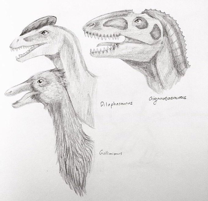 0 2 #Dilophosaurus, #Giganotosaurus, and #Gallimimus #sketches ... #paleoart #dinoart 20/11/30 02:21