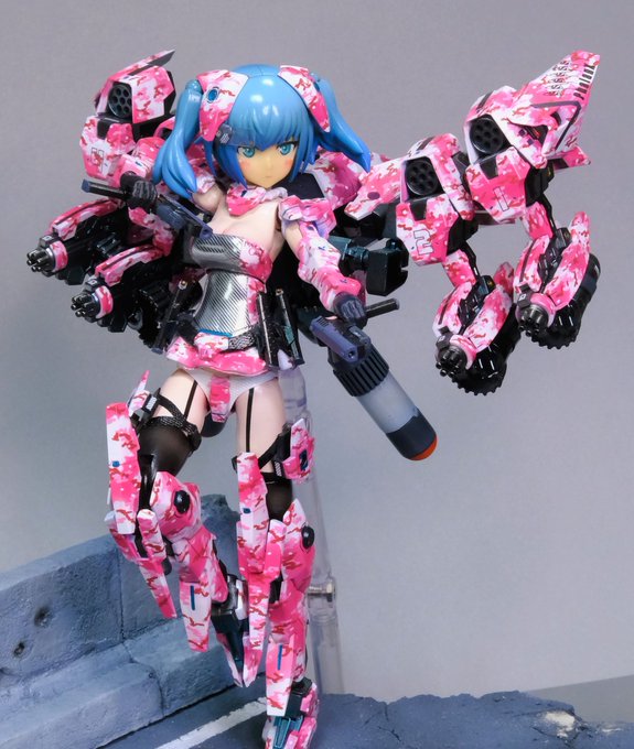 #今月作ったプラモ晒そうぜ #フロントミッション #ストラクチャーアーツ の中からゼニスとギザ(ジオラマ) つよいカメラ持参で社会科見学に積極的に参加してしまうが、よく見ると透けブラをしている #創彩少女庭園 小鳥遊暦チャン 地面付きで3つも完成させててえらい(*˘ω˘*)