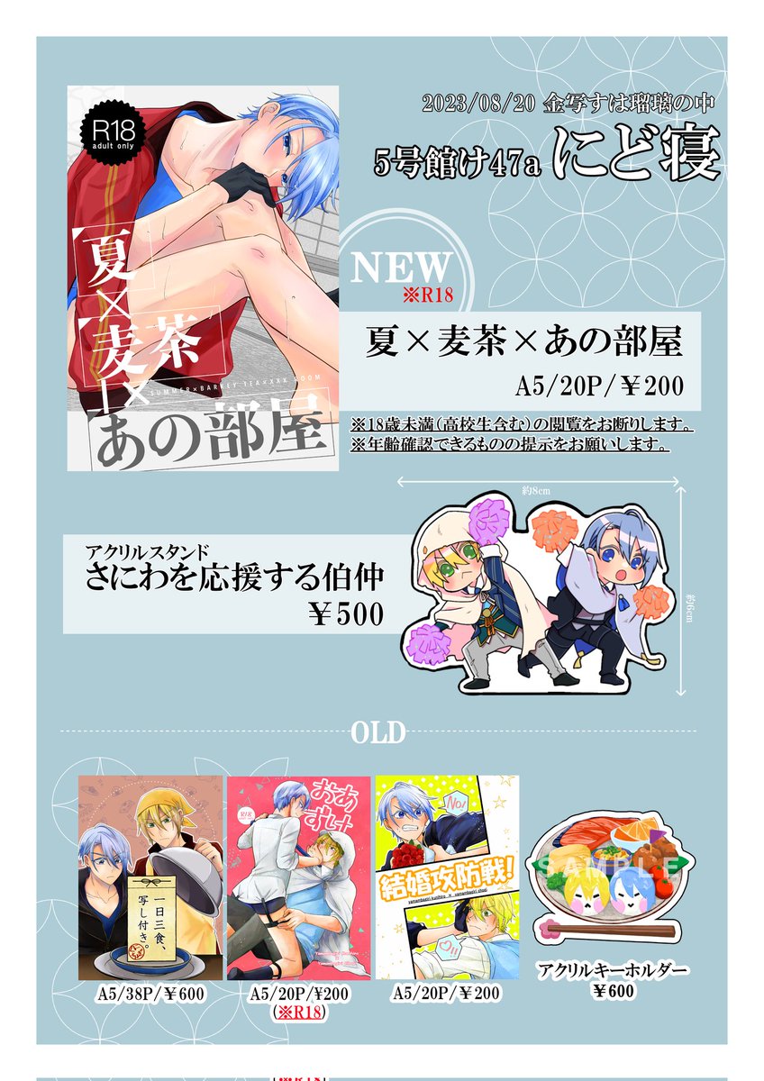 8/20金瑠璃のお品書きです! 5号館け47a「にど寝」 pixiv→pixiv.net/artworks/11092… よろしくお願いします✨ twitter.com/diz1111/status…