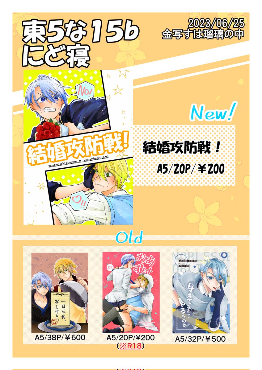 【6/25金瑠璃サンプル】 東5・な15b「にど寝」で頒布予定の新刊です! 「結婚攻防戦!」A5/20P/200円 結婚するかしないかで揉めてるお話です😀❤️ よろしくお願いします~! pixiv→pixiv.net/artworks/10916…