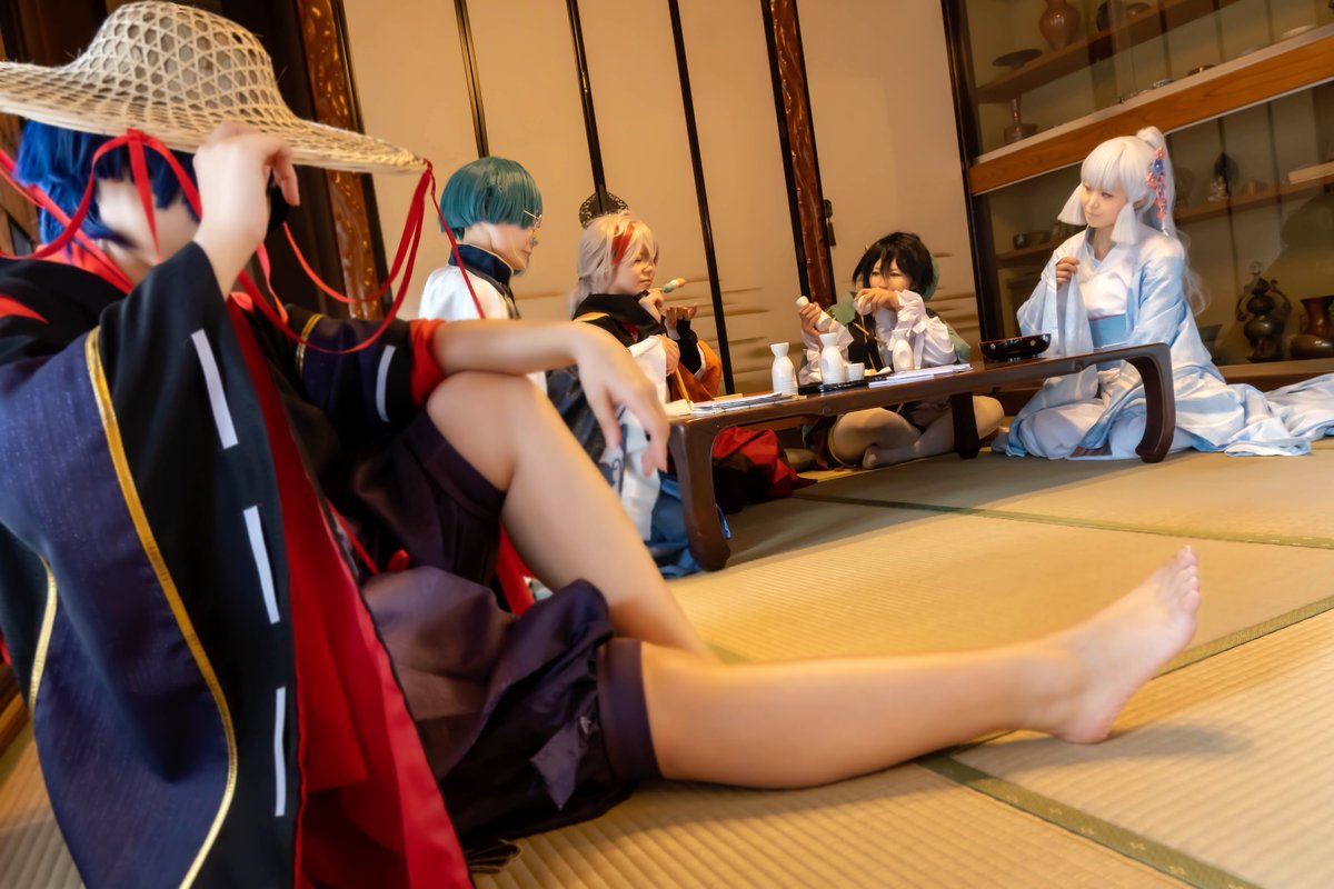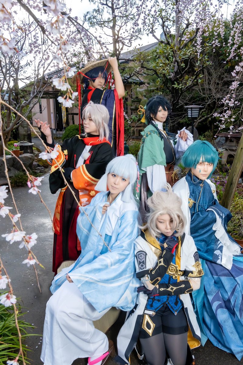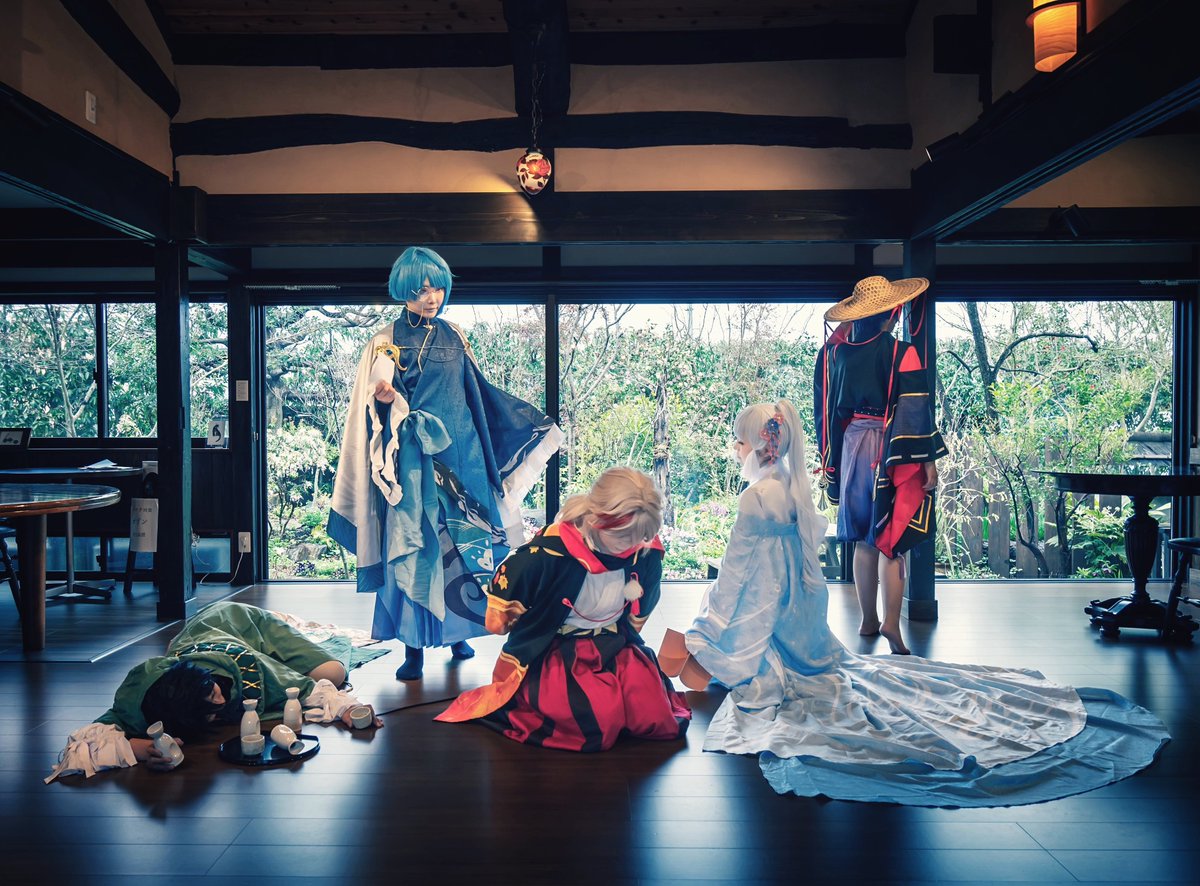【Cosplay/原神】 ──今は昔稲妻に五人の歌人在りけり、世の人は五歌仙と………───── 翠光 : @kaguyatwilight 葵の翁: @sasasaiyo 赤人 : @tanu_udon 墨染 : @souka0825 黒主 :Masato photo: @gargoil20061 #GenshinImpactcosplay ※ロケ地許可済