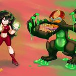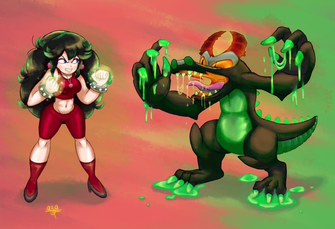 My side of an art trade with @SonicStarGenie ^^ It's an all-out brawl with Sensu vs Sludge! Things are about to get real with these two fierce fighters 💥😲💥 #OC #ArtistOnTwitter