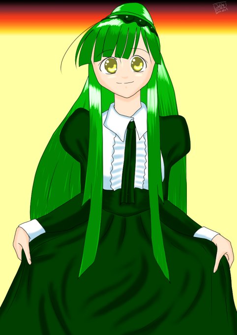今宵の。企画2枚目ははっさくしゃーべっと様( @Hassakusyabetto )を。資料に「後ろ髪は比較的自由です」とあったのでロングVer.にしてみましたが、いかがでしょうか。 #絵描き狼のイラスト工房