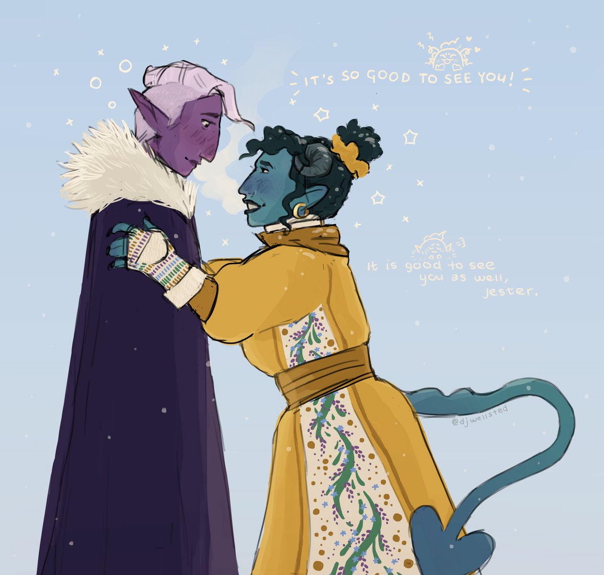 ✨❄️ oh we have so much to talk about! ❄️✨ He’s BACK I’ve missed him so MUCH!!! TIME FOR BIG HUGS!!!!! #CriticalRole #CriticalRoleFanart #EssekThelyss #JesterLavorre
