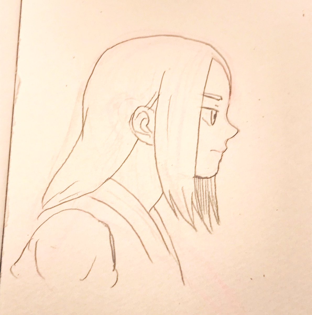 #このタグを見た人は推しの初描きと現在の絵を載せる 初>劇場で観た直後にカフェで描いたやつマジで恥ずかしすぎるのですが 正真正銘これが初なので仕方ない… 現>今書いてるやつの線画でござる