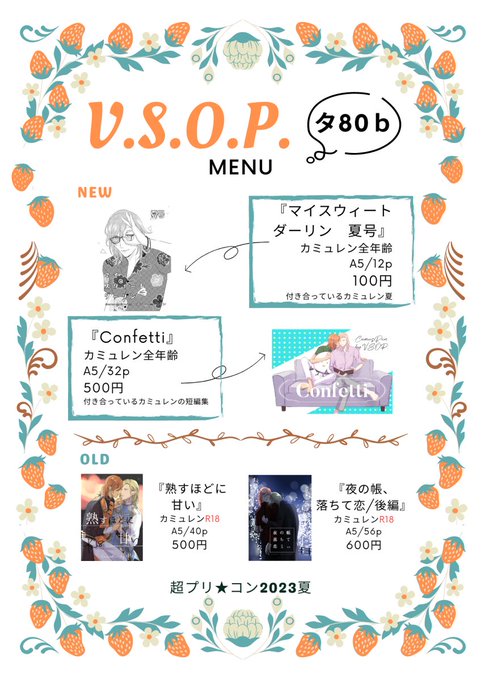 【超プリ★コン2023夏】おしながき | だくね #pixiv pixiv.net/artworks/11089… お品書き出来ました〜。ただ既刊の搬入が台風の影響でうまく出来てるかどうか不安なので何か当日問題が有ればアナウンスします